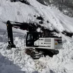 İş makinesi operatörü Celal Genç de çalışmaların çığ düşen alanlarda uzun sürdüğünü ifade ederek, "Yolun üstünden gide gide tabanına inmeye çalışıyoruz. Görüldüğü gibi kademe kademe iniyoruz. Dozer ve ekskavatörle aynı anda çalışıyoruz." diye konuştu.
