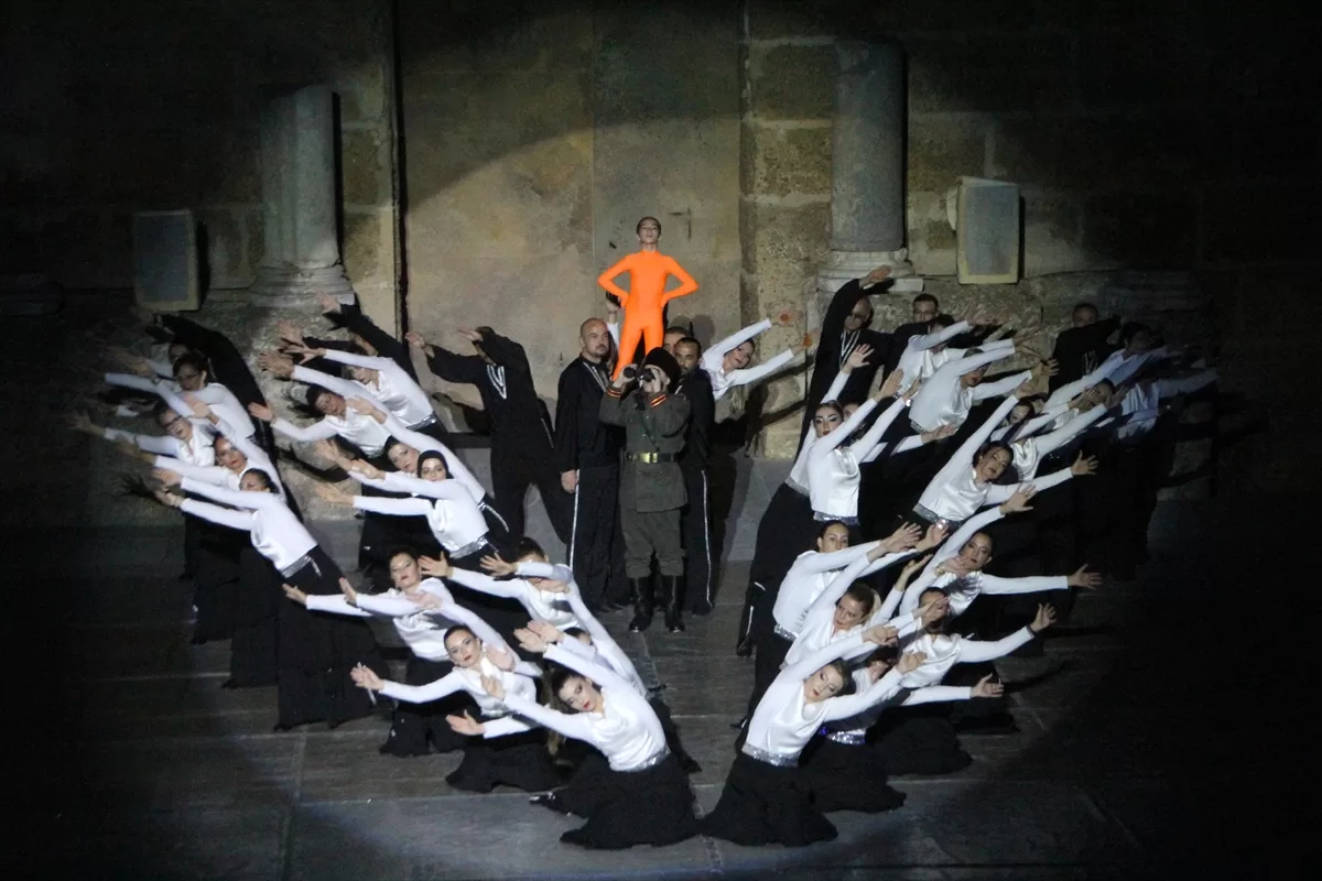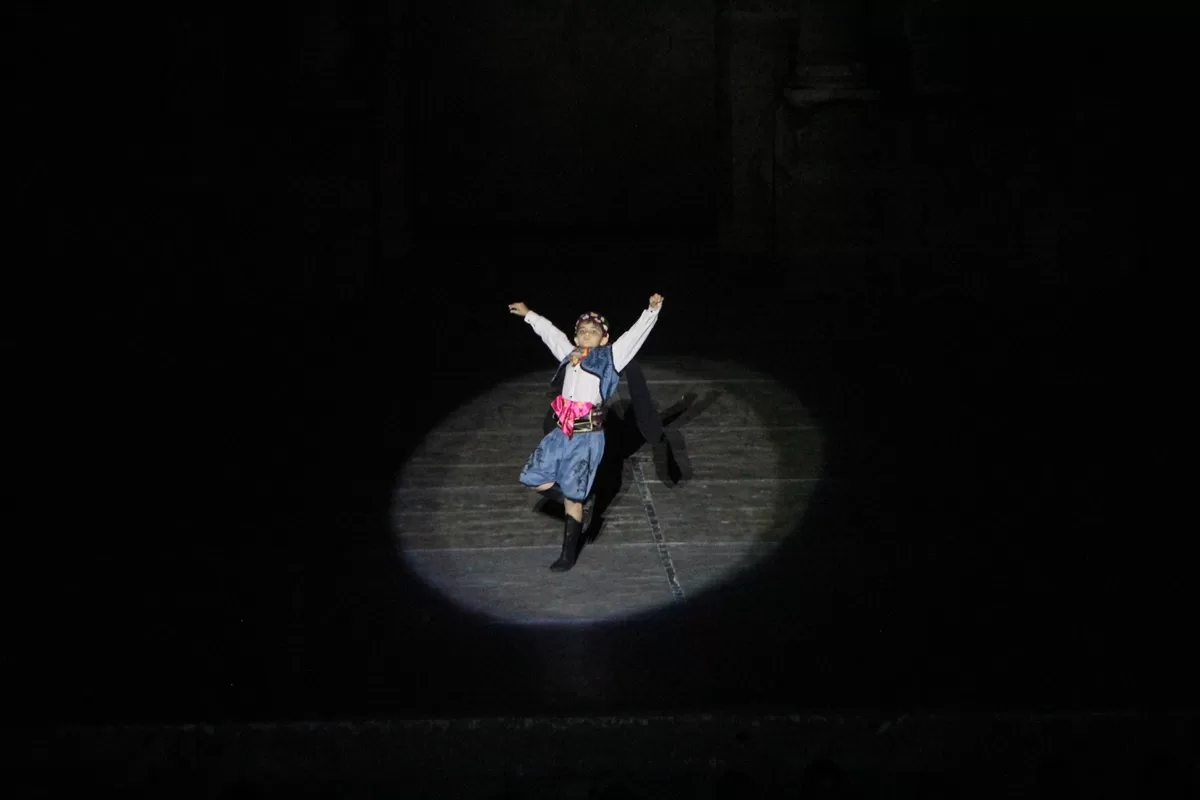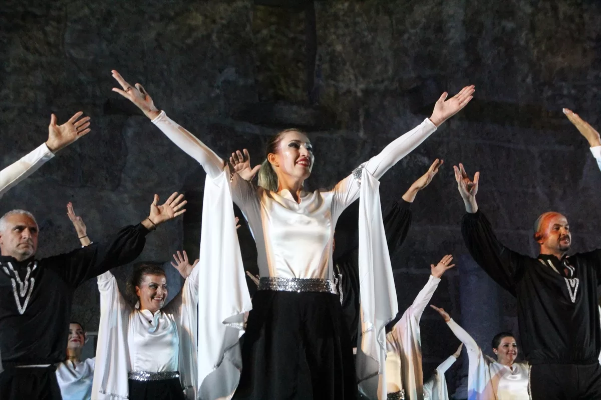 Antik tiyatronun tarihi atmosferindeki gösteride, 100 öğretmen ve 70 öğrenci sahne aldı.