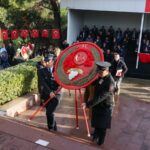 Anıta çelenk sunumuyla başlayan törende saygı duruşunda bulunuldu, İstiklal Marşı okundu, tören mangası tarafından saygı atışı yapıldı.