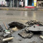 Metrelerce yükseğe fışkıran su, caddeye aktı.