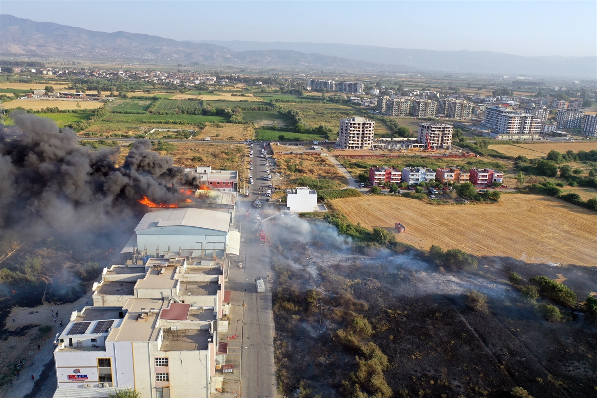 AYDIN (AA) – Aydın'ın Efeler ilçesinde otluk alanda çıkan ve organize sanayi bölgesindeki bir fabrikaya sıçrayan yangına müdahale ediliyor.