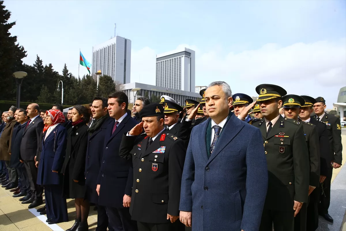 Büyükelçi Bağcı'nın Şehitlik Anıtı'na çelenk koyduğu törende şehitler için saygı duruşunda bulunuldu, Türkiye ile Azerbaycan'ın milli marşları okundu.