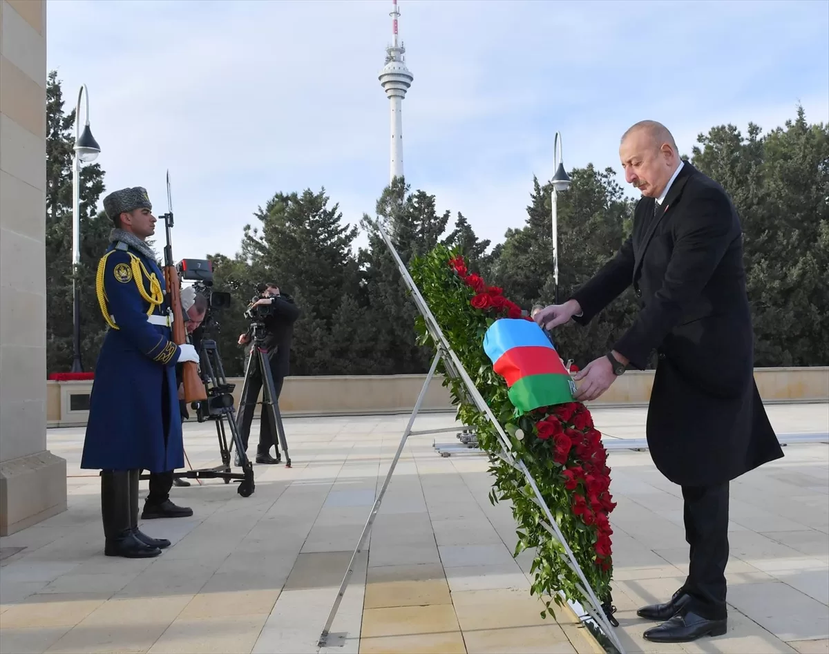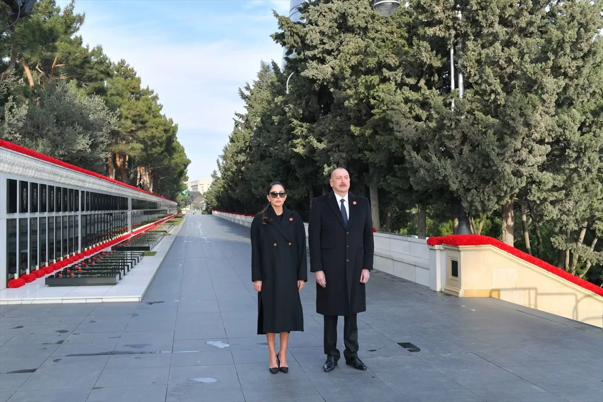 Cumhurbaşkanı İlham Aliyev de eşi Mihriban Aliyeva ile Şehitler Hiyabanı'nı ziyaret ederek Ebedi Ateş Anıtı'na çelenk bıraktı.