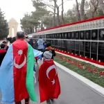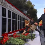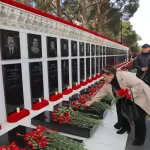 Bakü ve diğer bölgelerden gelenler, şehitliğin önünde uzun kuyruk oluşturdu. Mezarlara kırmızı karanfiller bırakan vatandaşlar, şehitler için dua etti.