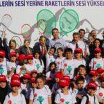 Burada 100 ilkokul öğrencisiyle bir araya gelen Bayraktar, daha sonra bazı öğrencilerle tenis oynadı.