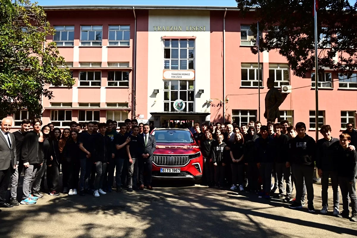 Togg'a binmek isteyen öğrencileri de kırmayan Bakan Karaismailoğlu, araca aldığı öğrencilerle kısa bir yolculuk yaptı.