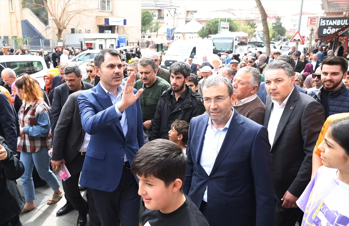 Kaynarca Merkez Camisi'nde vatandaşlarla sohbet edip, fotoğraf çektiren Bakan Kurum, çevredeki esnafı da ziyaret etti.