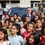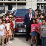 Bunun üzerine Togg ile okul bahçesine giren Nebati, öğrencilerle sohbet etti.