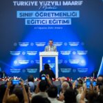 Ben milletime, benim öğretmenlerime, benim eğitim öğretim süreçlerinde görev alan dostlarıma, arkadaşlarıma güveniyorum. Ama onlar diyorlar ki 'Bunlar bir şey beceremezler, siz Güney Kore'den, Singapur'dan, Finlandiya'dan modeli alın, transfer edin.' Bu kadar sığ, bu kadar yüzeysel bir bakış açısı, kendi insanına bu kadar güvenmeyen, tepeden bakan bir mantık ve yaklaşım olamaz. Biz Türkiye Yüzyılı Maarif Modeli'ni sizlerle, öğretmen arkadaşlarımızla beraber geliştirdik. Çünkü ben bu işin sıkıntısını en ücra köşelerde çeken, en sıkıntılı ortamlarda çalışan öğretmen arkadaşlarıma güvenerek bu yolu yürümek istiyorum."