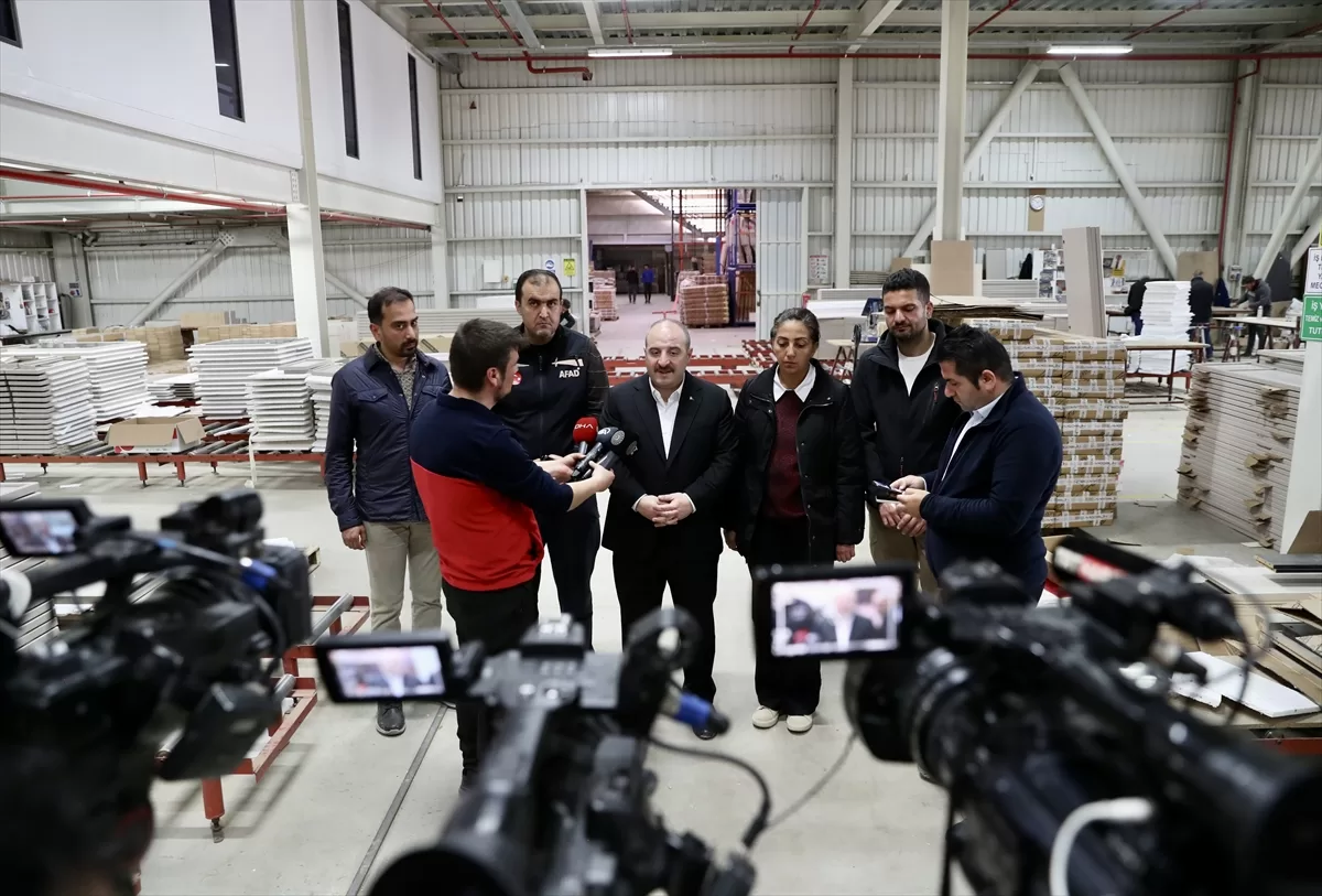 Depremden 2 hafta sonra üretime yeniden başlayan bir mobilya fabrikasına geçen Varank, burada yaptığı açıklamada, Sanayi ve Teknoloji Bakanlığının gelecek döneme ilişkin hazırladığı planları hayata geçirmek üzere ziyaretlerde bulunduklarını, derici, kunduracı, metal ve mobilya sektörlerinin üretim alanlarını incelediklerini aktardı.