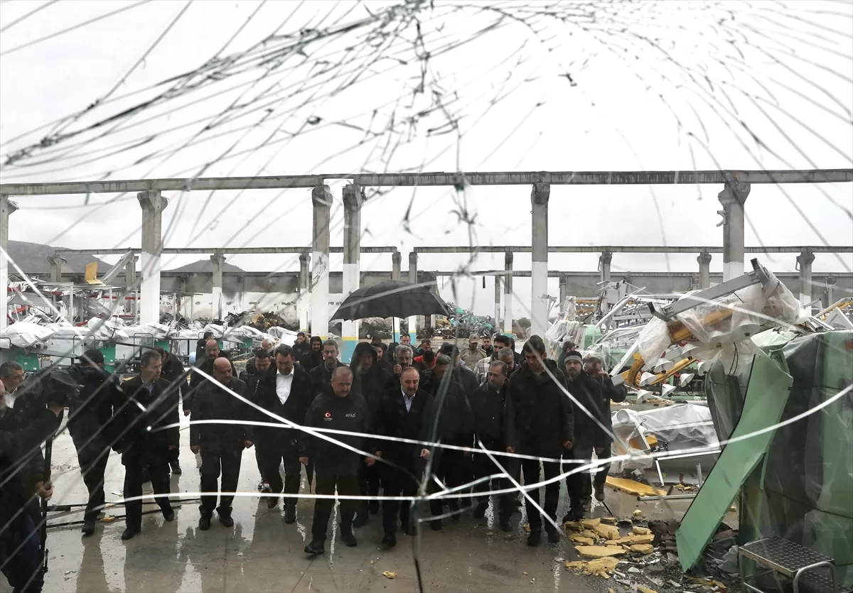 İlçelerdeki incelemelerinin ardından Adıyaman Merkez Organize Sanayi Bölgesi'ne geçen Varank, Kabancı Tekstil, Ekspress Tekstil ve Bozgün Konteyner fabrikalarında oluşan hasarı yerinde gördü.