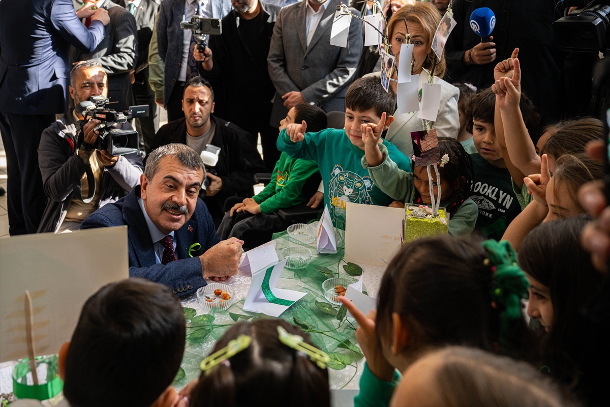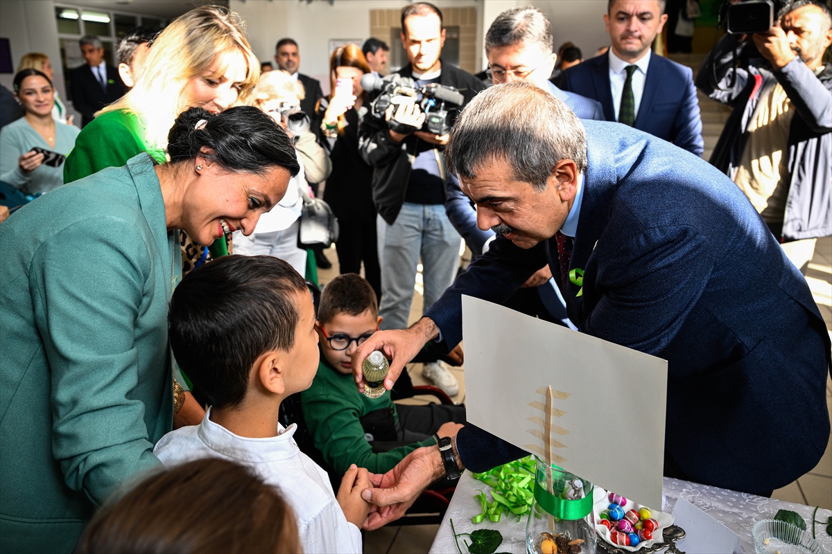 Okulda "Yeşil Vatan" temalı özel gereksinimli öğrenciler tarafından hazırlanan "Tohumu Bil" etkinliğine katılan iki Bakan, daha sonra Öğretmenler Odası'nda öğretmenlerle görüştü, taleplerini dinledi.