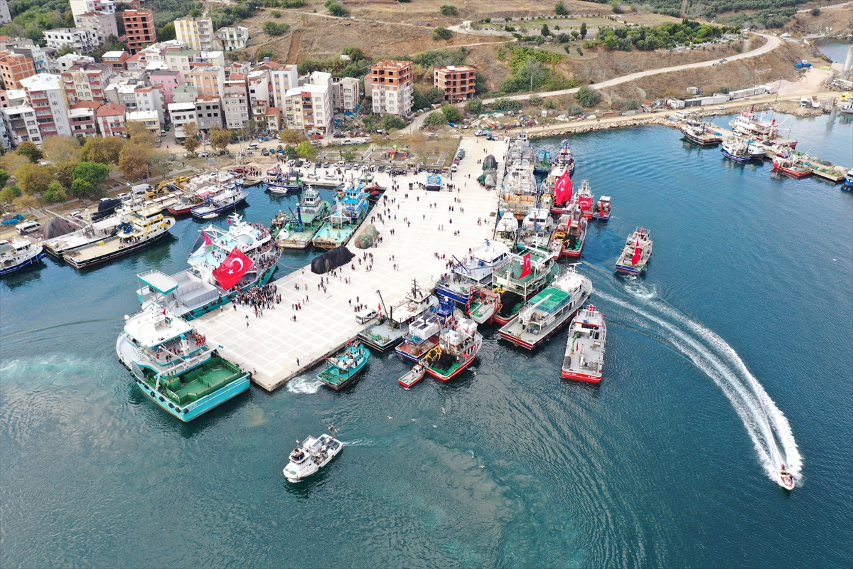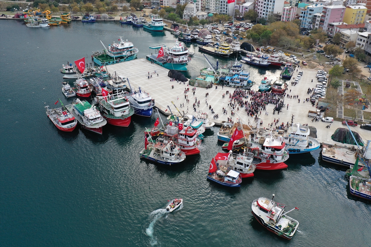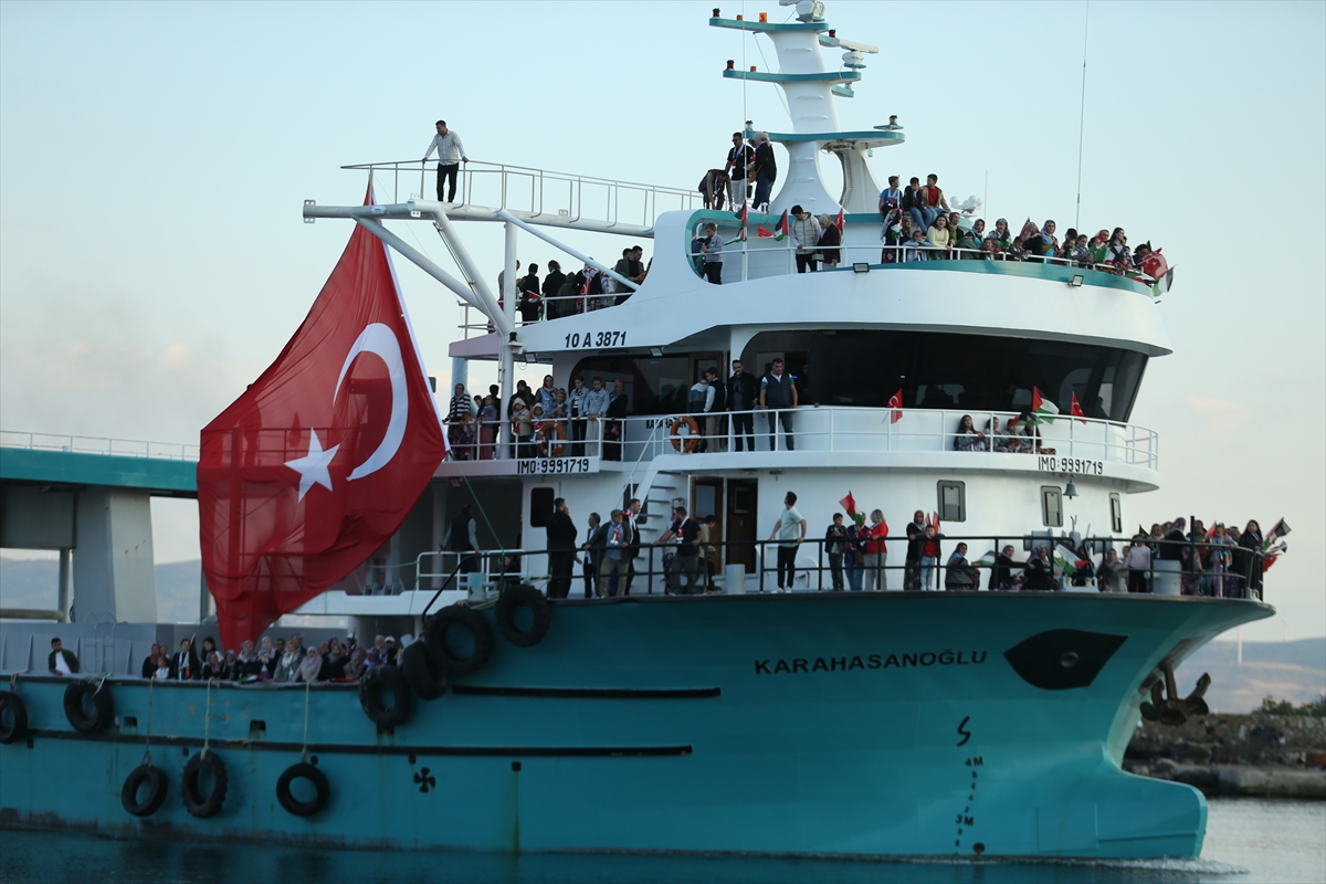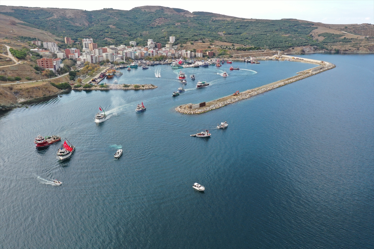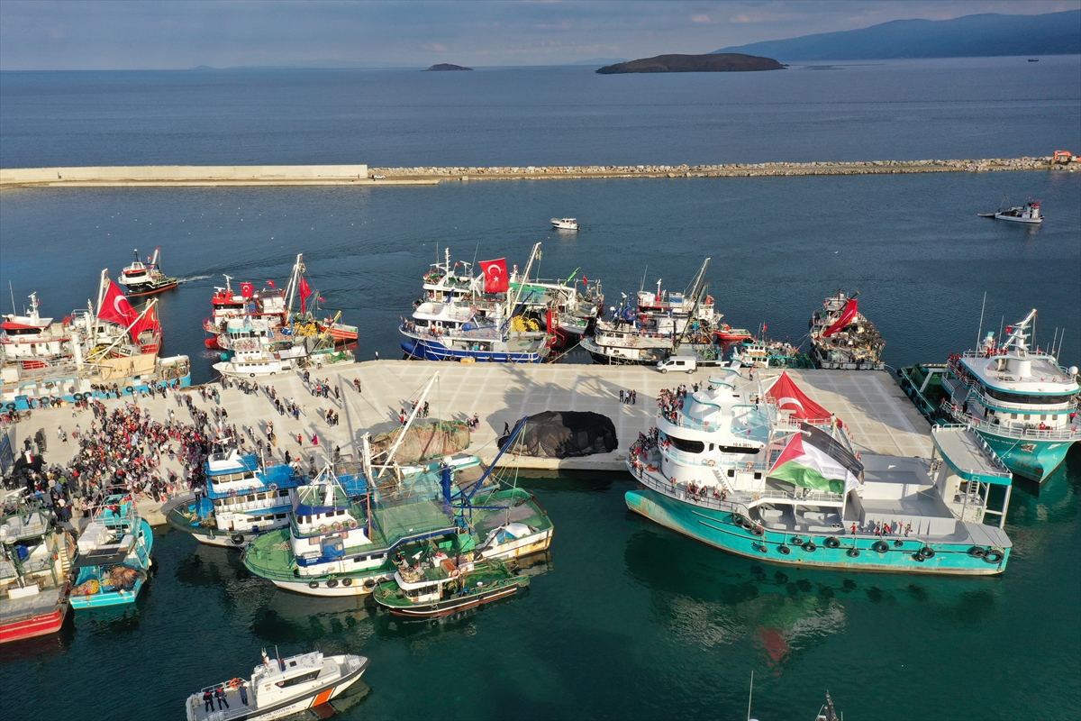 BALIKESİR (AA) – Balıkesir'in Erdek ilçesinde Türk ve Filistin bayraklarıyla denize açılan tekneler Gazze'ye insani yardım ulaştırmak amacıyla yola çıkan ve İsrail'in saldırısına uğrayan Küresel Sumud Filosu'na destek verdi.