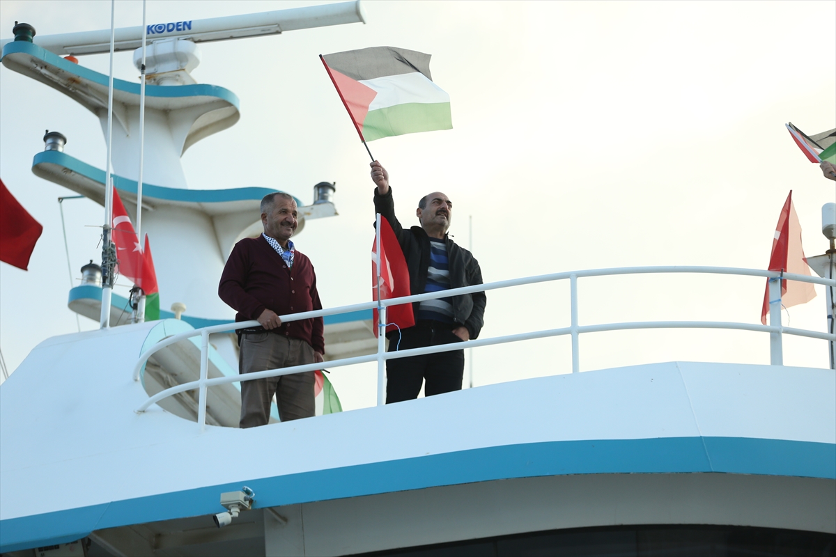 Türk ve Filistin bayraklarıyla donatılan gemi ve tekneler Marmara'da tur attı.