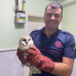 BALIKESİR (AA) – Balıkesir'in Karesi ilçesinde bir binanın havalandırma boşluğuna düşerek mahsur kalan baykuş, itfaiye ekibince kurtarıldı.
