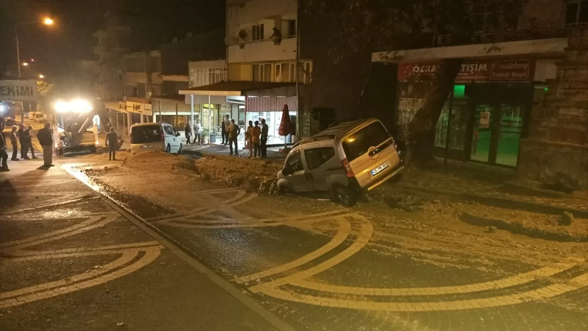 Sağanak nedeniyle bazı yollarda derin yarıklar oluştu, park halindeki bazı araçlar bu yarıklara düştü.