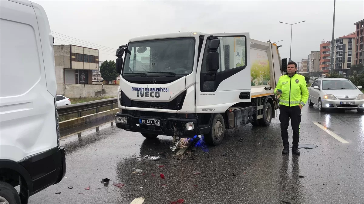 Çanakkale-İzmir kara yolu Kadıköy Mahallesi yakınlarında, Adil A. (43) idaresindeki Edremit Belediyesine ait 10 AEV 832 plakalı çöp kamyonu, aynı istikamette giden Merve D. (37) yönetimindeki 10 AGC 479 plakalı otomobile, ardından da Tahsin A. idaresindeki 10 ADG 060 plakalı ticari araca çarptı.