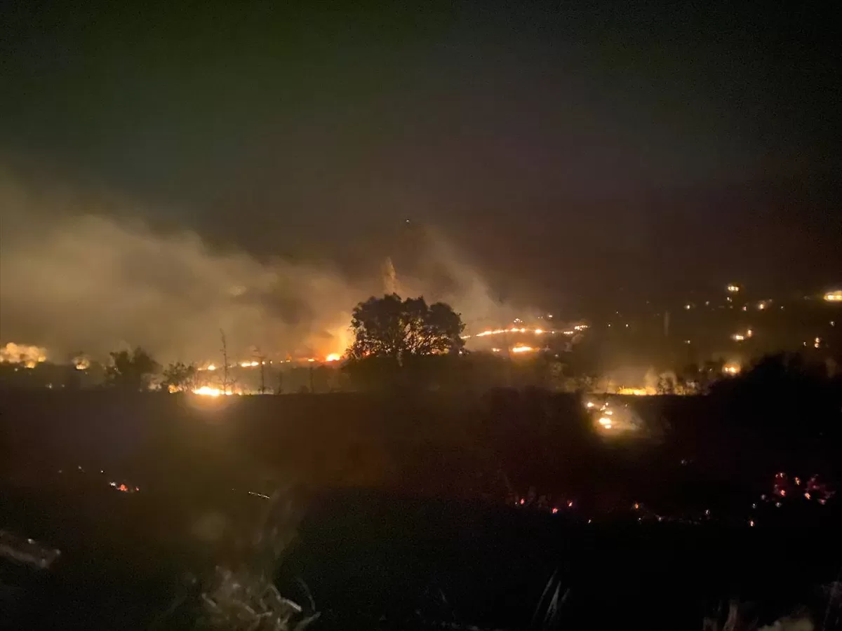 Kuvvetli rüzgarın etkili olduğu bölgede ekiplerin yangına müdahalesi sürüyor.