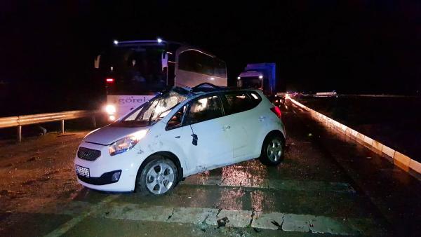 Kaza nedeniyle bir süre trafiğe kapanan karayolu, aracın kaldırılmasının ardından yeniden ulaşıma açıldı.
