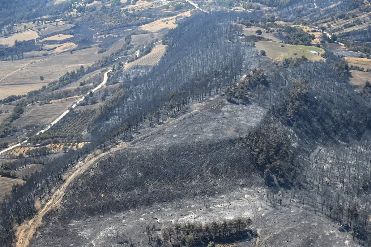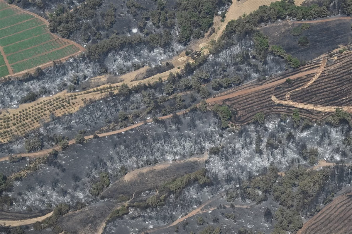 ÇANAKKALE (AA) – Çanakkale'de çıkan orman yangınından etkilenen 2 bin 650 hektar orman, 1430 hektarı tarım alanı ve diğer alanlar olmak üzere yaklaşık 4 bin 80 hektarlık alan, basın mensuplarınca havadan görüntülendi.
