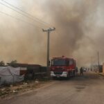 Şiddetli rüzgarın etkisiyle kısa sürede büyüyen yangının, tarım arazileri ve otluk alanlardan geçerek yerleşim yerine yaklaşması üzerine, bölge sakinlerine 112 Acil Yardım hattı üzerinden tahliye çağrısı yapıldı.