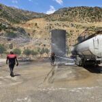 TPAO Batman Bölge Müdürlüğüne bağlı Yazılı Petrol Kuyusunun bulunduğu sahada petrol transferi yapıldığı sırada özel bir firmaya ait yakıt tankeri alev aldı.