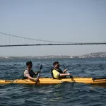Kano kürek sporu yapmanın güvenli olduğunu belirten Yılmaz, "Bilmeyen biriyle yaparsanız oldukça tehlikeli olabilir ama bilen birisiyle yaptığınız ve trafik hattına girmediğimiz için tehlike arz etmiyor. Bu zamana kadar da bir sorun yaşamadık." dedi.