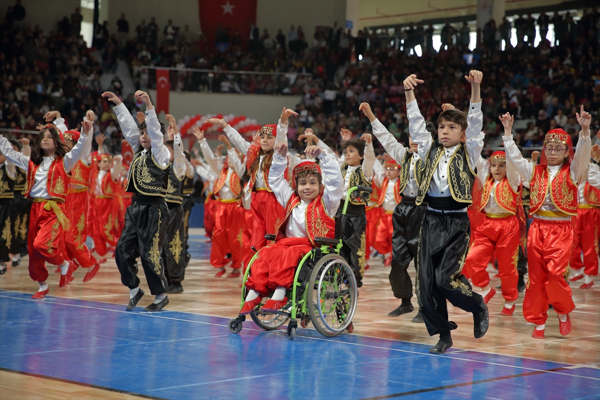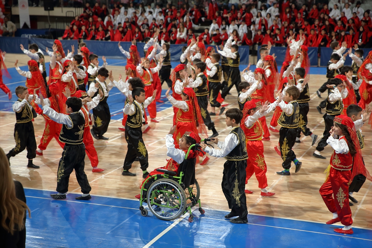 ÇORUM (AA) – Çorum'da yaşayan üçüncü sınıf öğrencisi bedensel engelli Selenay Kaya, tekerlekli sandalyesiyle katıldığı 23 Nisan Ulusal Egemenlik ve Çocuk Bayramı kutlama programında, arkadaşlarıyla halk oyunları gösterisi sundu.