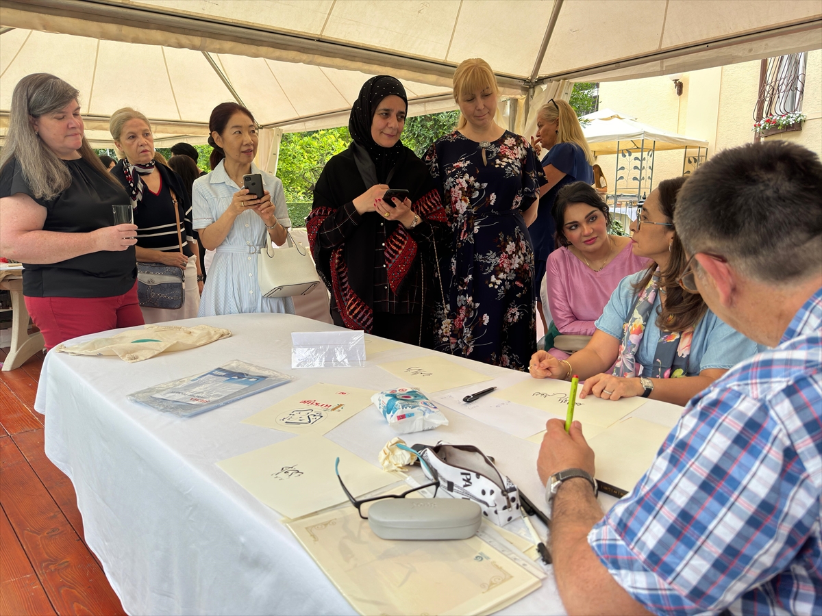 Belgrad Büyükelçisi Hami Aksoy'un eşi Canan Parmaksızoğlu Aksoy'un davetiyle büyükelçilik konutunda düzenlenen etkinlikte, ebru, hat, ağaç baskı gibi geleneksel sanatlar tanıtıldı.