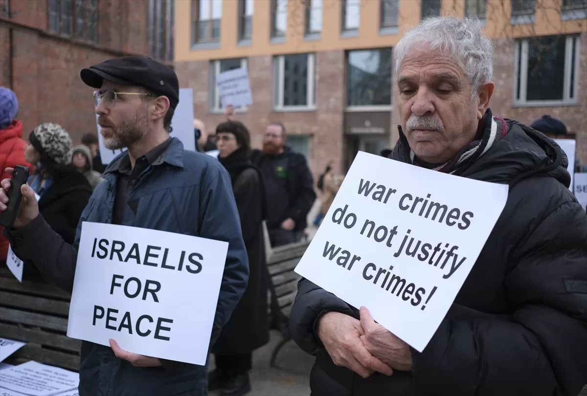 Almanya Dışişleri Bakanlığının önünde toplanan bir grup İsrailli, Filistin’e destek vererek Gazze’de bir an önce ateşkes ve barışın sağlanması ve Alman hükümetinin İsrail’e diplomatik çözüm için baskı yapmasını istedi.
