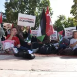 İsrail'e tepki içerikli dövizler taşıyan grubun başlattığı oturma eyleminin gece yarısına kadar süreceği bildirildi.