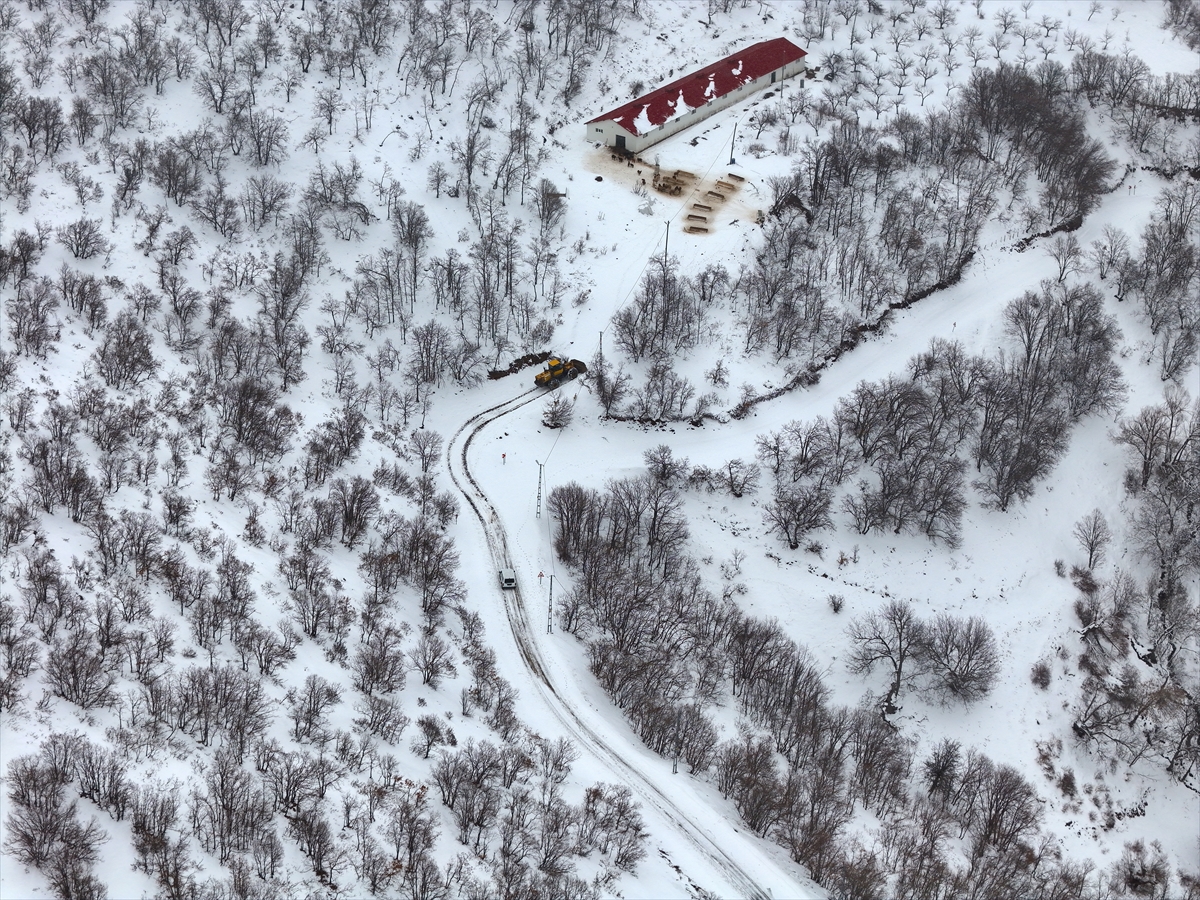 Ekiplerin 77 köy yolunun açılması için sürdürdüğü çalışmalar dronla görüntülendi.