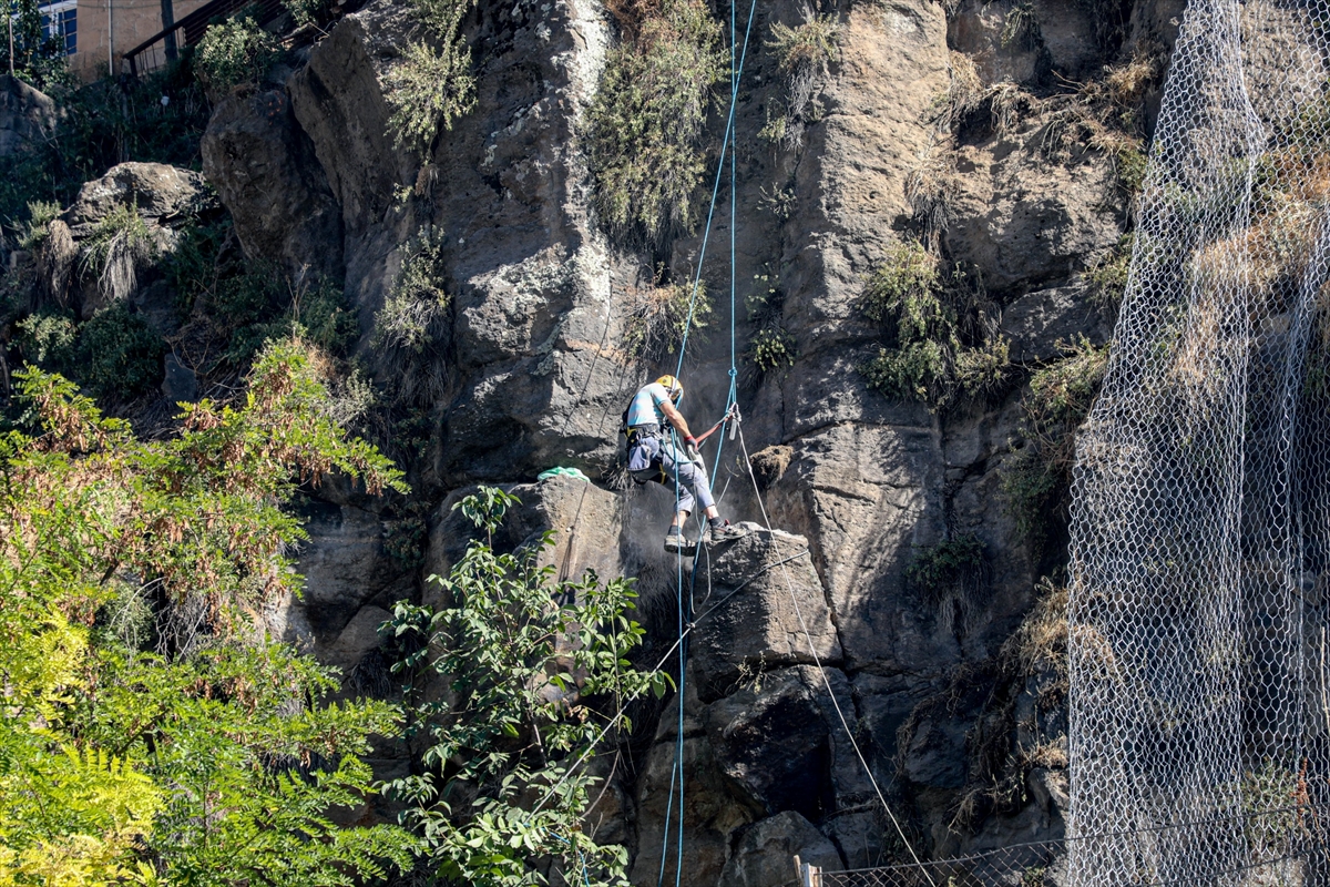 Belediyeden yapılan açıklamaya göre, ekipler geçmiş yıllarda yaralanmalı kazalara neden olan kaya düşmelerinin oluşturduğu riski ortadan kaldırmak için çalışma başlattı.
