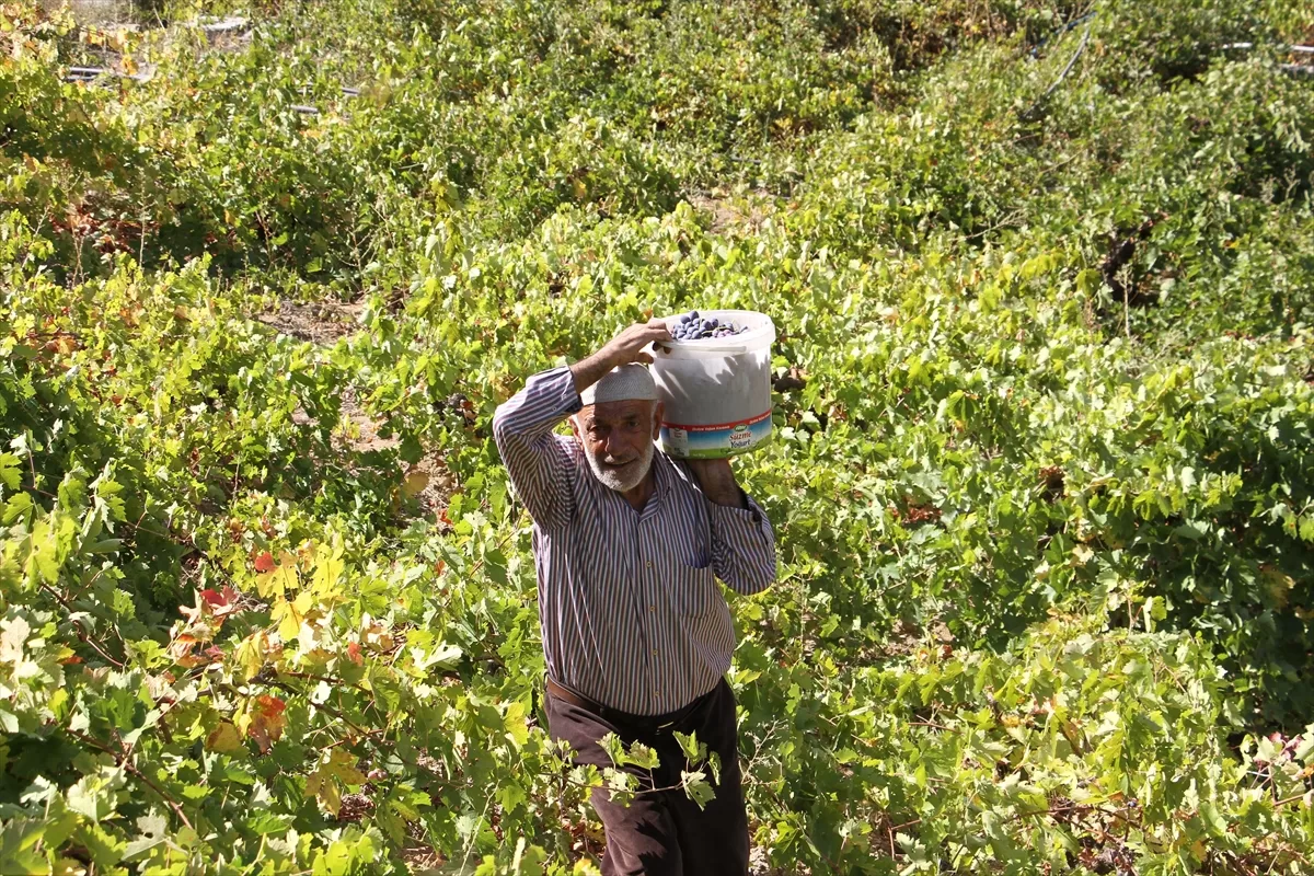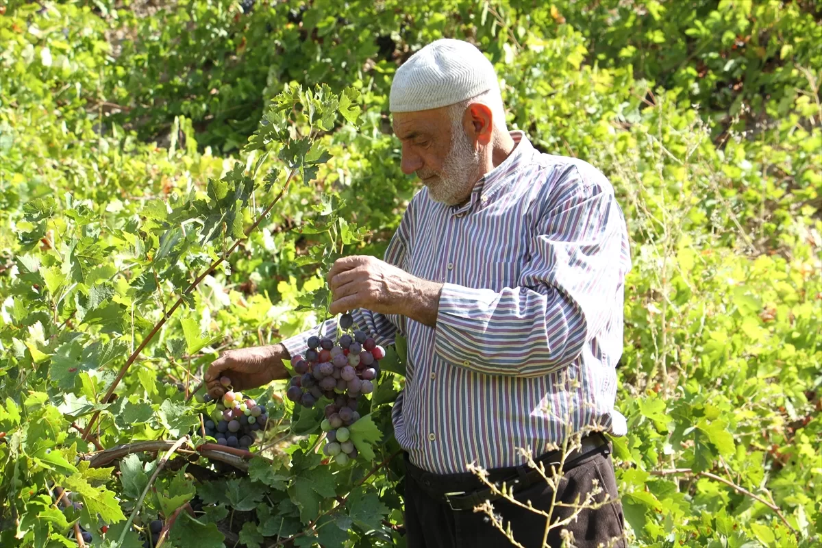 İlçeye bağlı Akşar köyü Aşağı Kılavuz mezrası sakinleri, katkı maddesi kullanmadan büyük emeklerle yetiştirdikleri üzümleri, özenle toplayıp köye taşıyor.