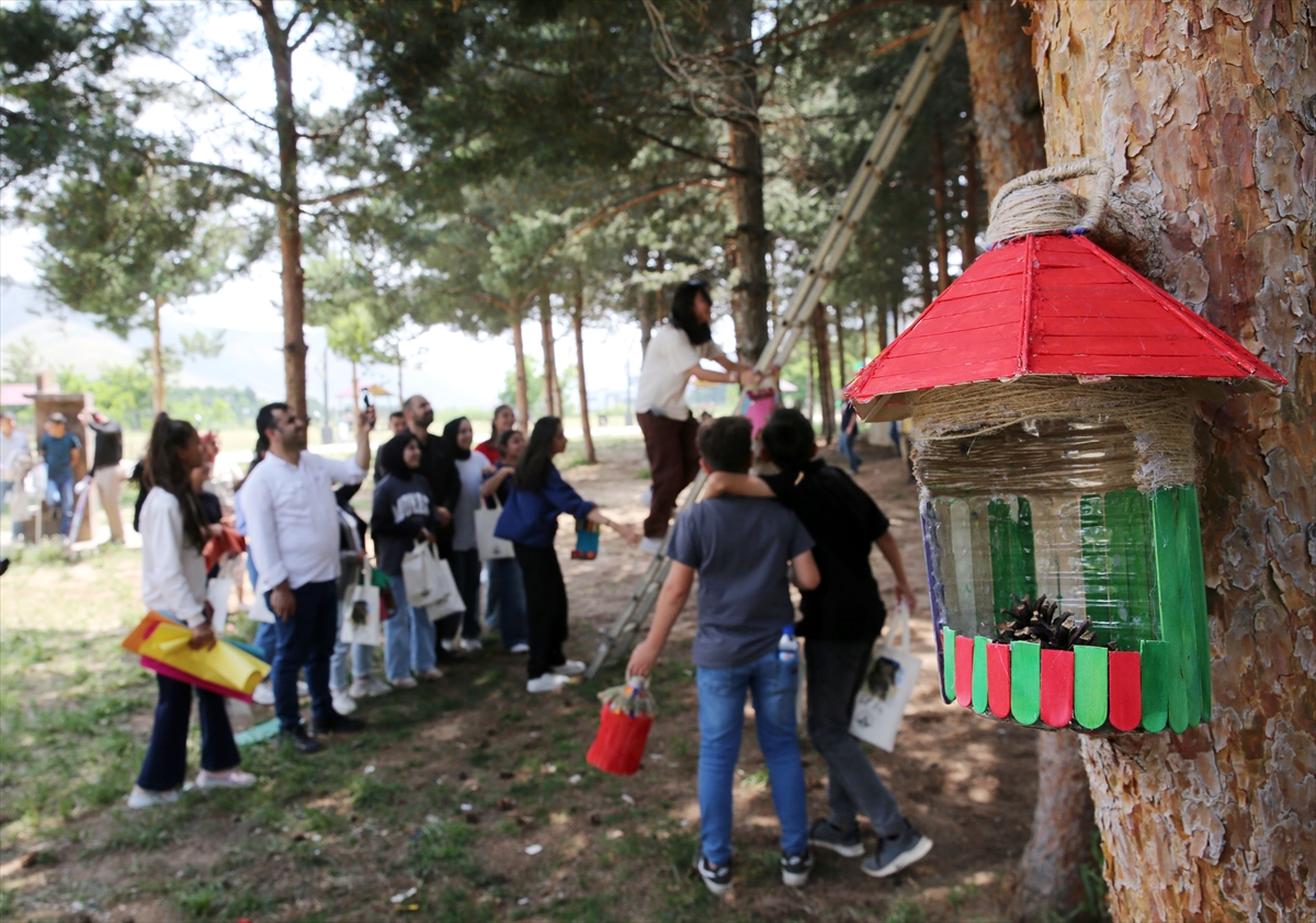 BİTLİS (AA) – Bitlis'te 8 Ağustos Ortaokulu öğrencileri, atık su bidonu ve çeşitli malzemelerle yaptıkları kuş yuvalarını Millet Bahçesi'ndeki ağaçlara yerleştirdi.