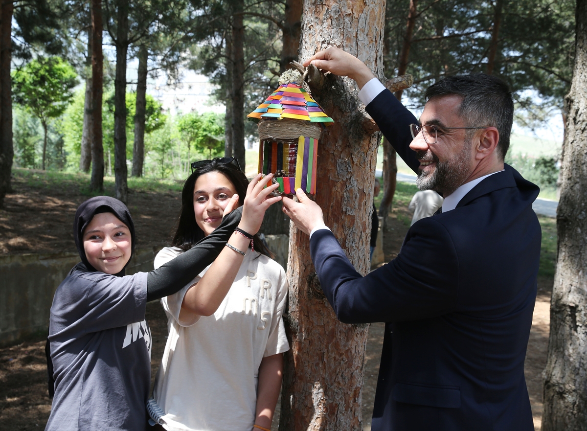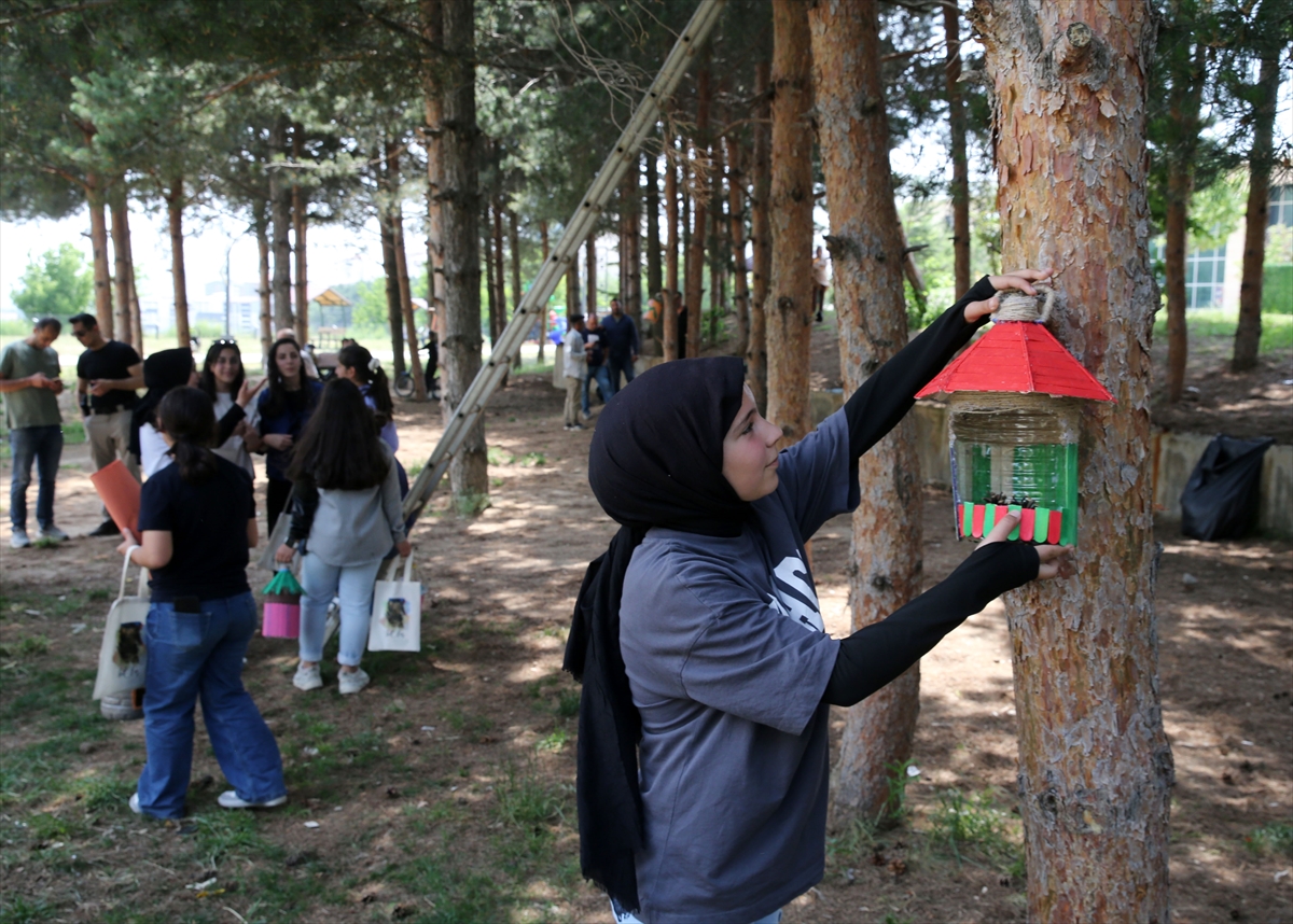 Teknoloji ve tasarım dersinde atık su bidonları ve çeşitli malzemelerle 30 kuş yuvası yapan öğrenciler, bunları Millet Bahçesi'ndeki ağaçlara astı.