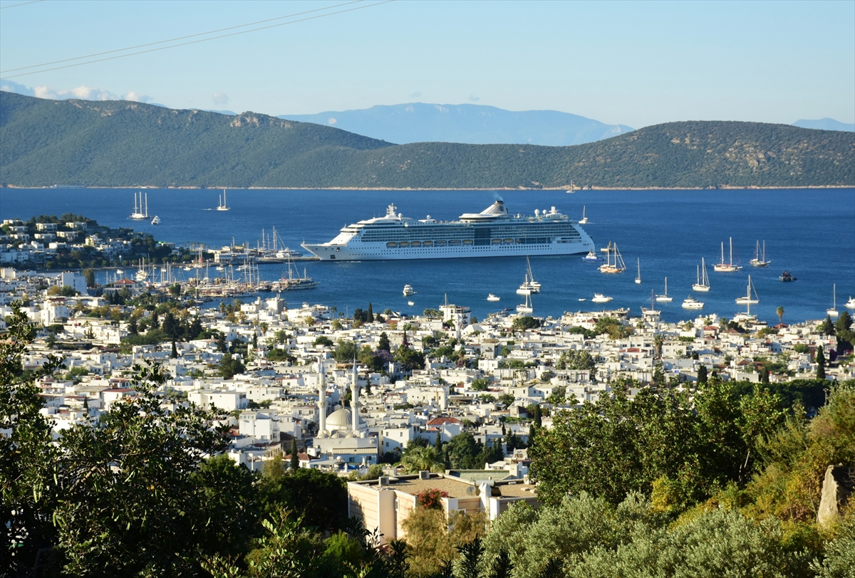 Limasol Limanı'ndan sonra rotasını Muğla'ya çeviren 294 metrelik dev gemi, Bodrum Limanı'na demirledi. Gemide, çoğu ABD'li 2 bin 253 yolcu ile 874 personel bulunduğu belirtildi.