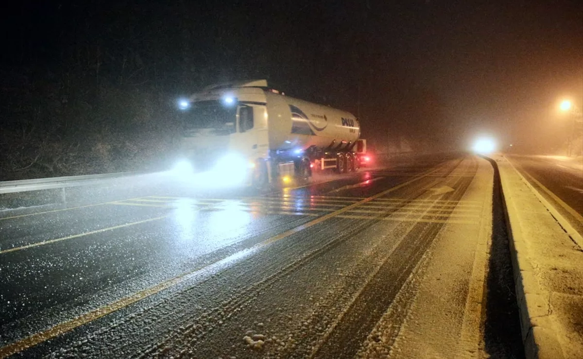 Karayolları ekipleri kar yağışı ve soğuk havanın etkisiyle yolda oluşabilecek buzlanmalara karşı tuzlama çalışması yapıyor.