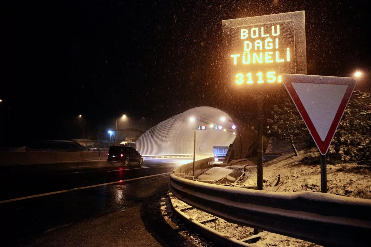 Anadolu Otoyolu'nun Bolu Dağı Tüneli, Viyadükler, Abant Kavşağı ve Yumrukaya mevkilerinde etkili olan kar yağışı ile birlikte, yol kenarındaki alanlar beyaza büründü.