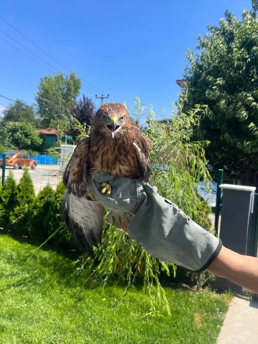 Vatandaşların ormanlık alanda bitkin halde bulduğu kızıl şahin, Doğa Koruma ve Milli Parklar Şube Müdürlüğü ekiplerine teslim edildi.