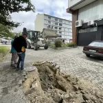 Borazanlar Mahallesi Ayvaz Sokak'ta belediye ekiplerince iş makineleriyle yürütülen çalışmalar sırasında doğal gaz borusu zarar gördü.