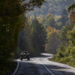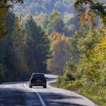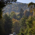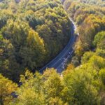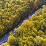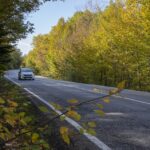 Tabiat parkına ulaşımı sağlayan kara yolunda, yeşil, sarı ve kahverenginin tonlarına bürünen ağaçlar güzel manzara oluşturuyor.