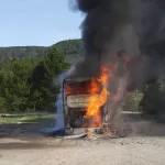 D-750 kara yolundan Bursa'ya tamir için giden Mustafa Ay idaresindeki 16 AET 585 yolcu otobüsü, Horhor Rampası mevkiinde motor kısmından henüz belirlenemeyen nedenle yanmaya başladı.