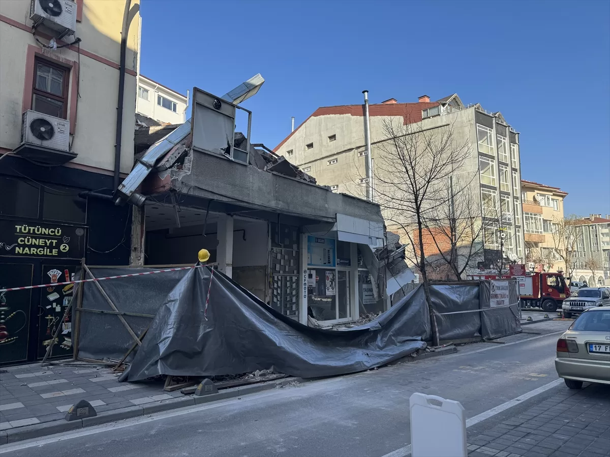 BOLU (AA) – Bolu'da acil yıkım kararı kapsamında yıkılan 3 katlı binadan caddeye düşen moloz parçaları paniğe yol açtı.