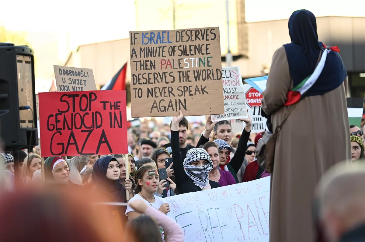 ZENİCA (AA) – Bosna Hersek'in Zenica şehrinde toplanan yüzlerce kişi, İsrail'in Gazze'ye yönelik saldırılarını protesto etti.