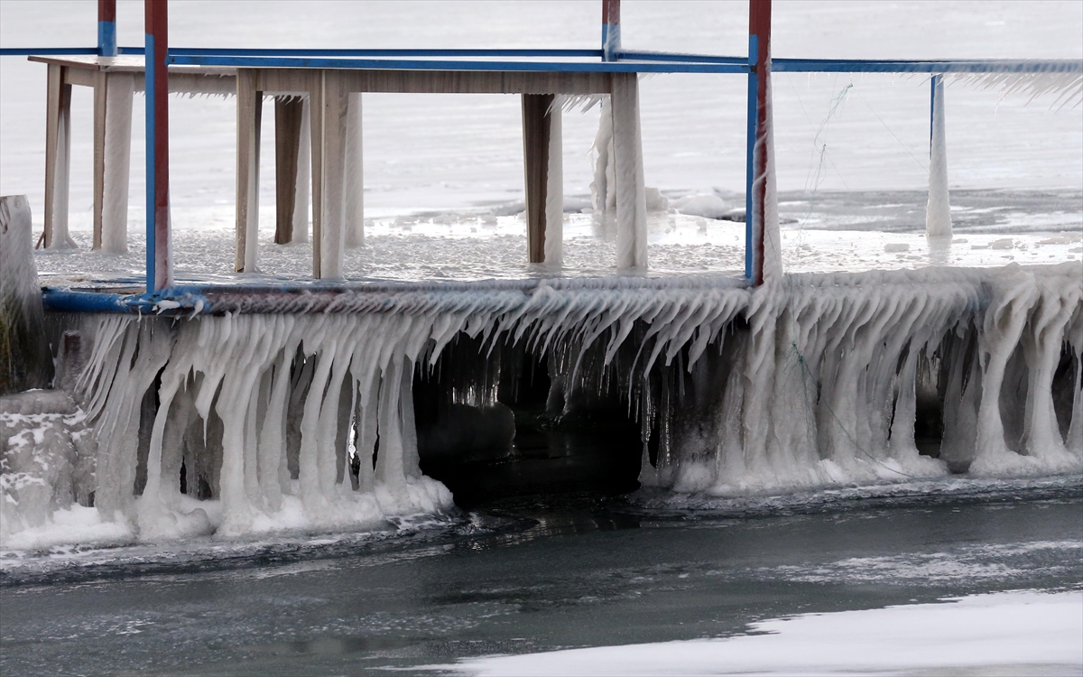 Hava sıcaklığının zaman zaman gece sıfırın altında 20 dereceye kadar düştüğü bugünlerde Çıldır Gölü'nün bir bölümü buz tuttu.