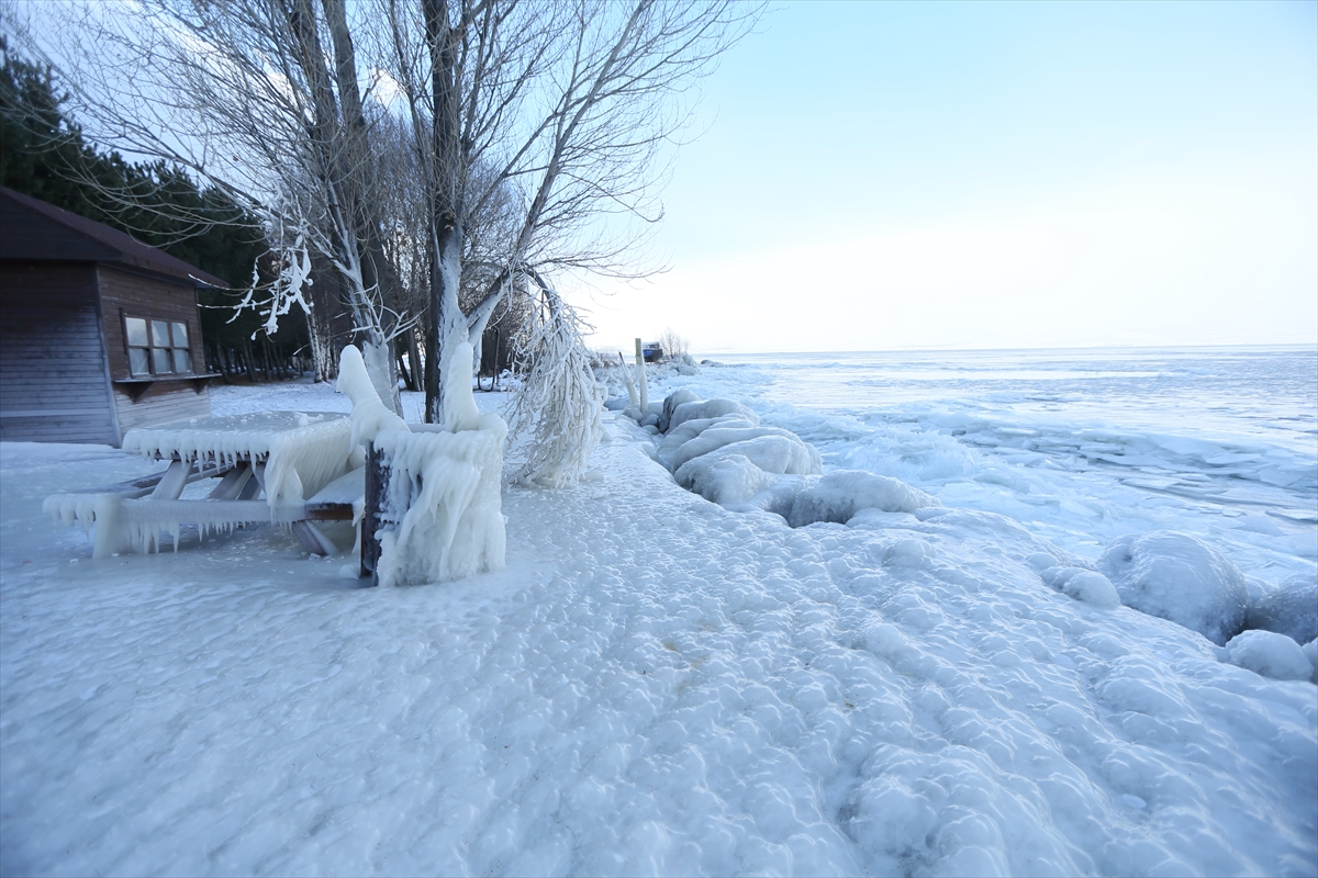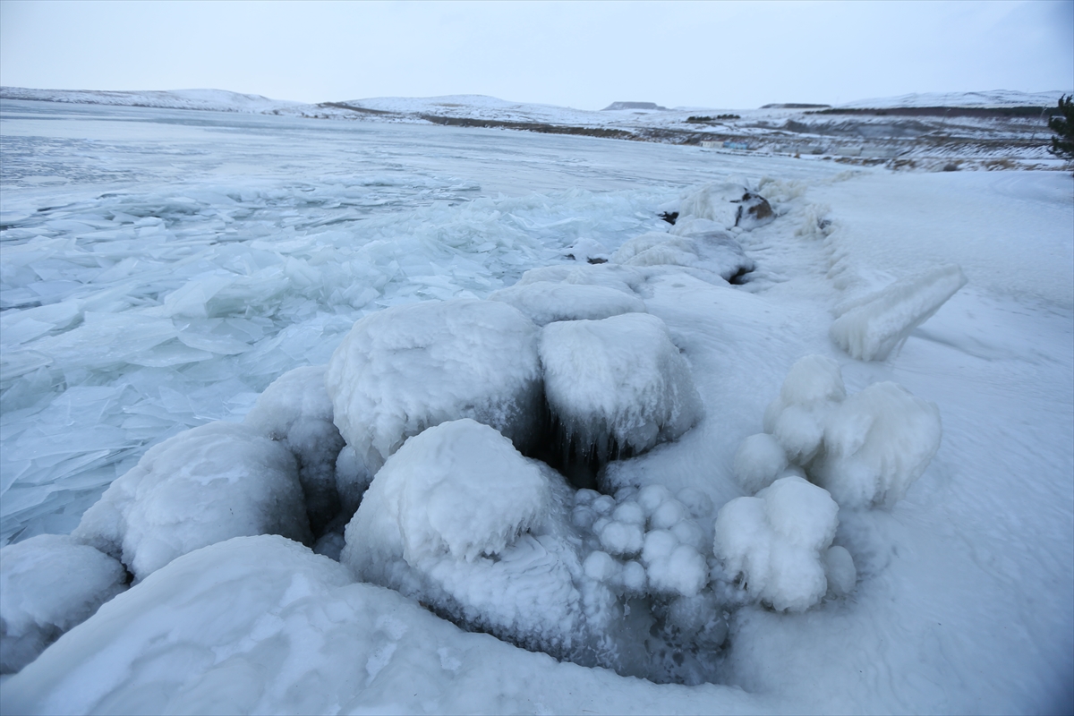 ARDAHAN (AA) – GÜNAY NUH – Çıldır Gölü'nün kıyısında buzlanma sonrası oluşan görüntüler kutupları andırıyor.