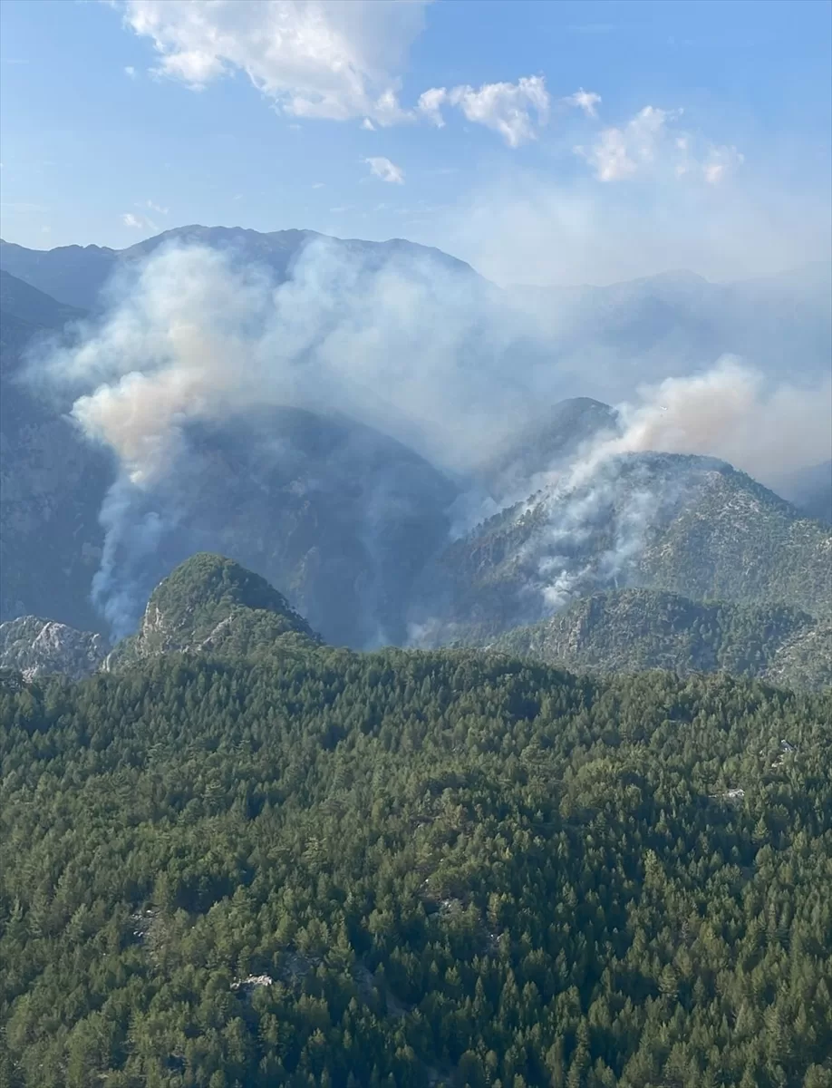 BURDUR (AA) – Burdur'un Altınyayla ilçesinde bulunan Karanlıkdere Kanyonu'ndaki ormanlık alanda 2 Ekim'de çıkan ve kontrol altına alındıktan sonra dün yeniden alevlenen yangın, söndürülmeye çalışılıyor.