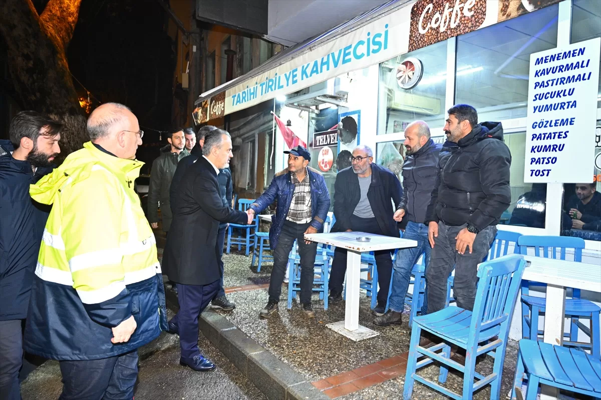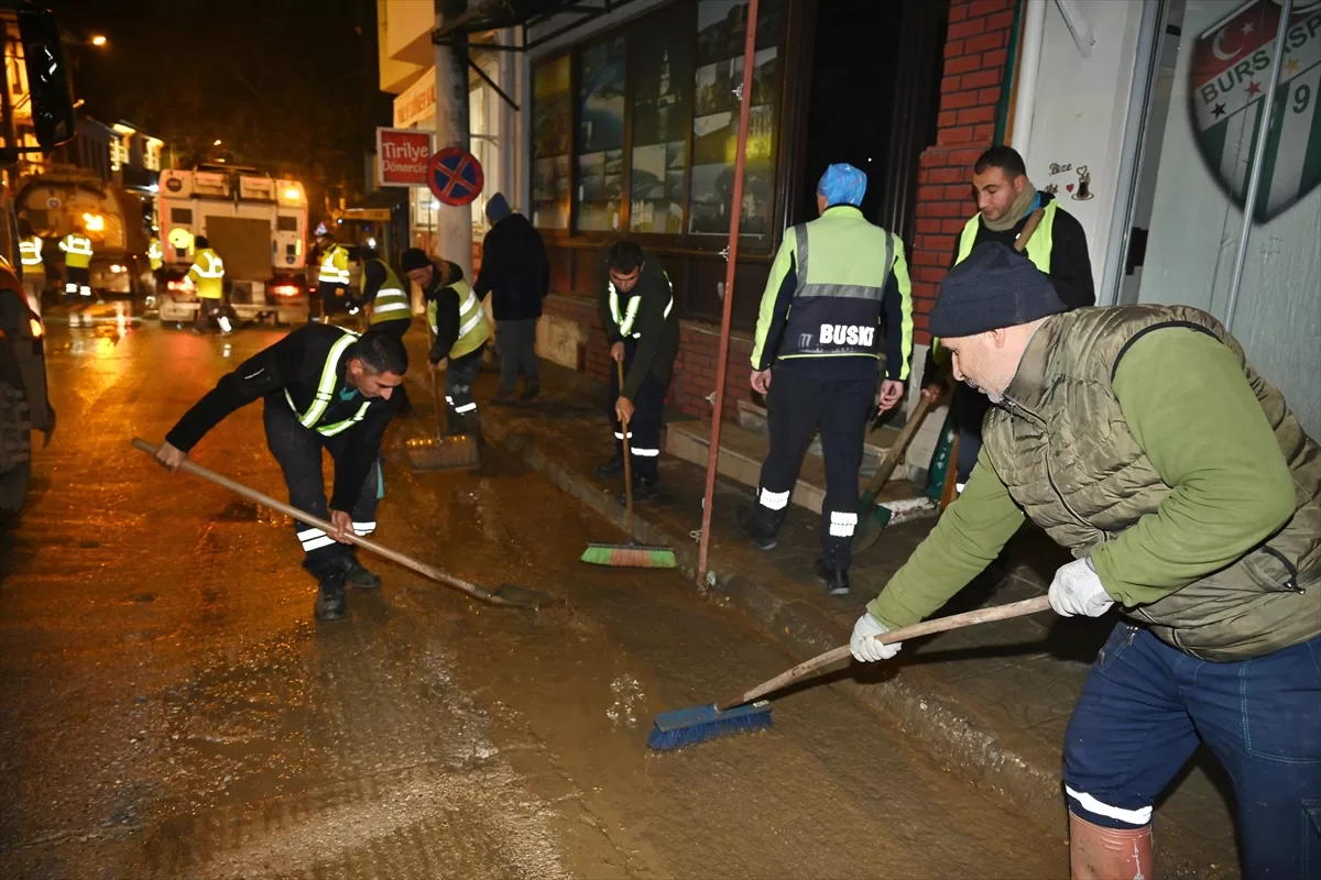 BURSA (AA) – Bursa Büyükşehir Belediye Başkanı Alinur Aktaş, şiddetli yağış sonrası oluşan selden etkilenen Bursa'nın Mudanya ilçesi Tirilye Mahallesi’nde yürütülen çalışmaları yerinde inceledi.