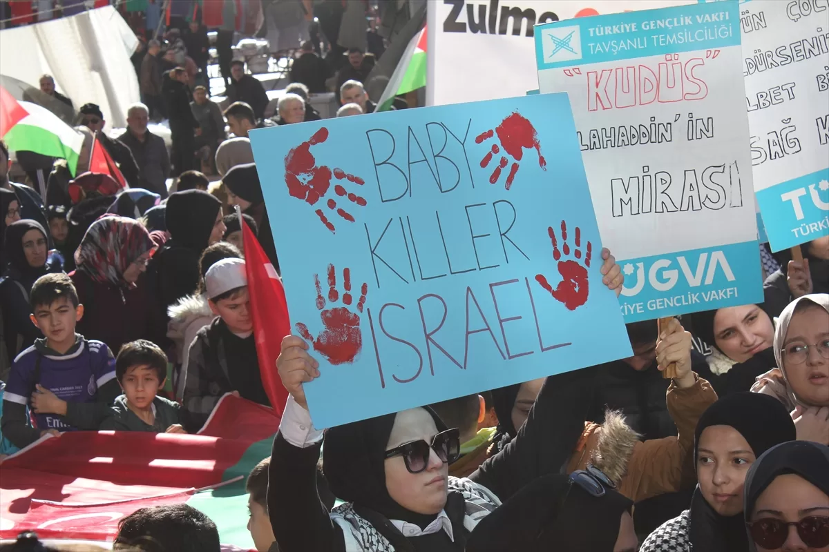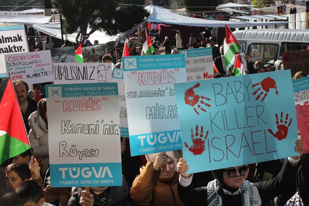 Tavşanlı ilçesinde ise Saat Kulesi önünde toplanan Filistin Gönüllüleri ile bazı sivil toplum kuruluşlarının üyelerinden oluşan grup, yürüyüşe geçti.
